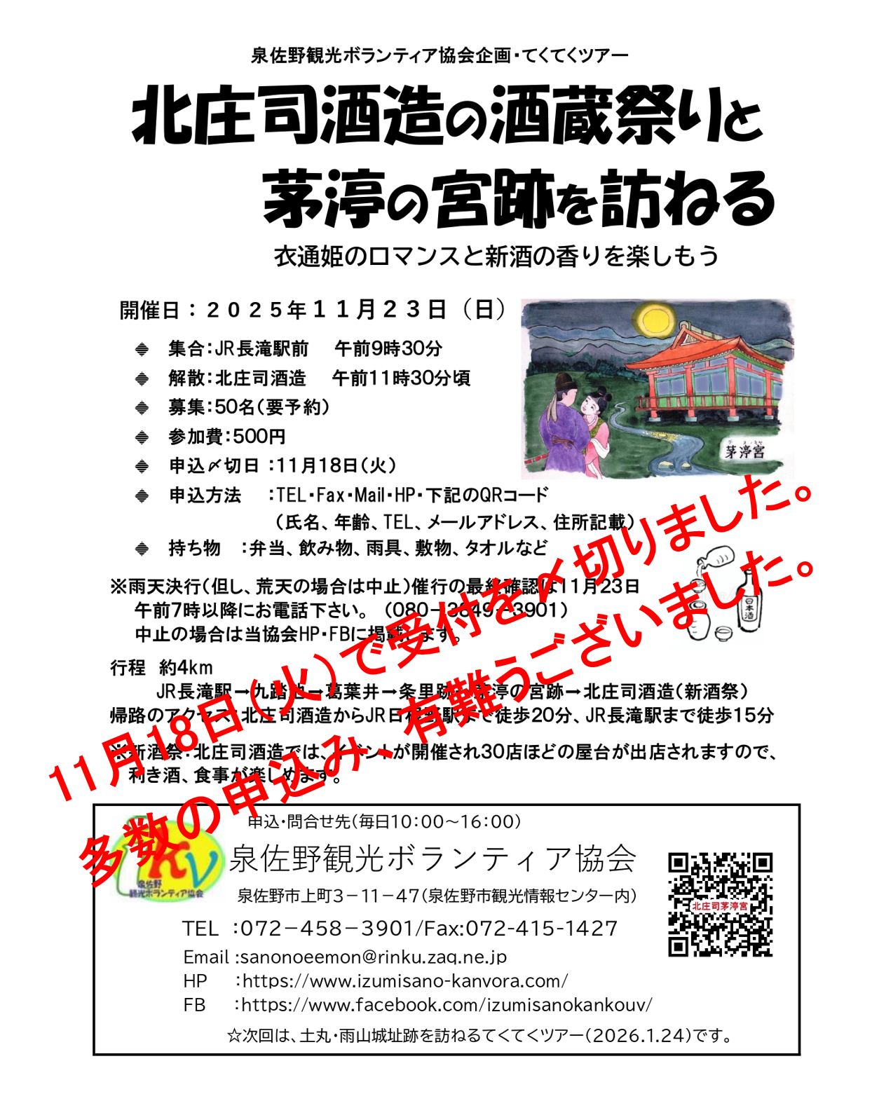 申込フォーム ↓ 申込みは、ここをクリックして下さい。(申込み〆切日:2025年11月18日(火)) (電話、Mail、Faxでも申込み可能です。) ※ 次回は、2026年1月24日(土) 「南北朝時代を感じながら土丸、雨山城址に登る」です。 乞うご期待下さい。!!